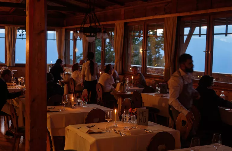 Wenn der Tag sich verabschiedet, verwandelt sich der Gasthof Kohlern in eine VIP-Loge. Von hier oben aus scheint das Abendrot die Dolomitenzacken hautnah zu berühren, während Bozen langsam in der Dämmerung versinkt. Während die Sonne den Himmel über der Mendel in den schönsten Farben explodieren lässt, lassen sich die Freuden aus der bekannt guten Küche und des Kellers besonders vorzüglich genießen. Ob in der einmaligen Panoramaveranda im alpinen Jugendstil oder draußen auf der Terrasse und im Garten unter den Linden, Sie können Ihrem Genuss freien Lauf lassen.